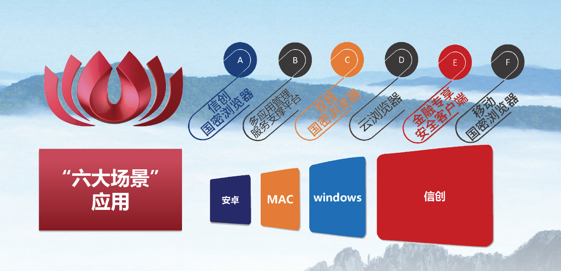 红莲花国密浏览器不仅仅是一款浏览器,经过长期的用户实践,目前红莲花国密浏览器已形成了六大版本,满足不同应用领域客户的多样性需求。且设有客户端和服务端两部分,共同为用户实现浏览器使用中的统一兼容、统一入口、统一管理服务,增强国产浏览器使用中的安全特性。