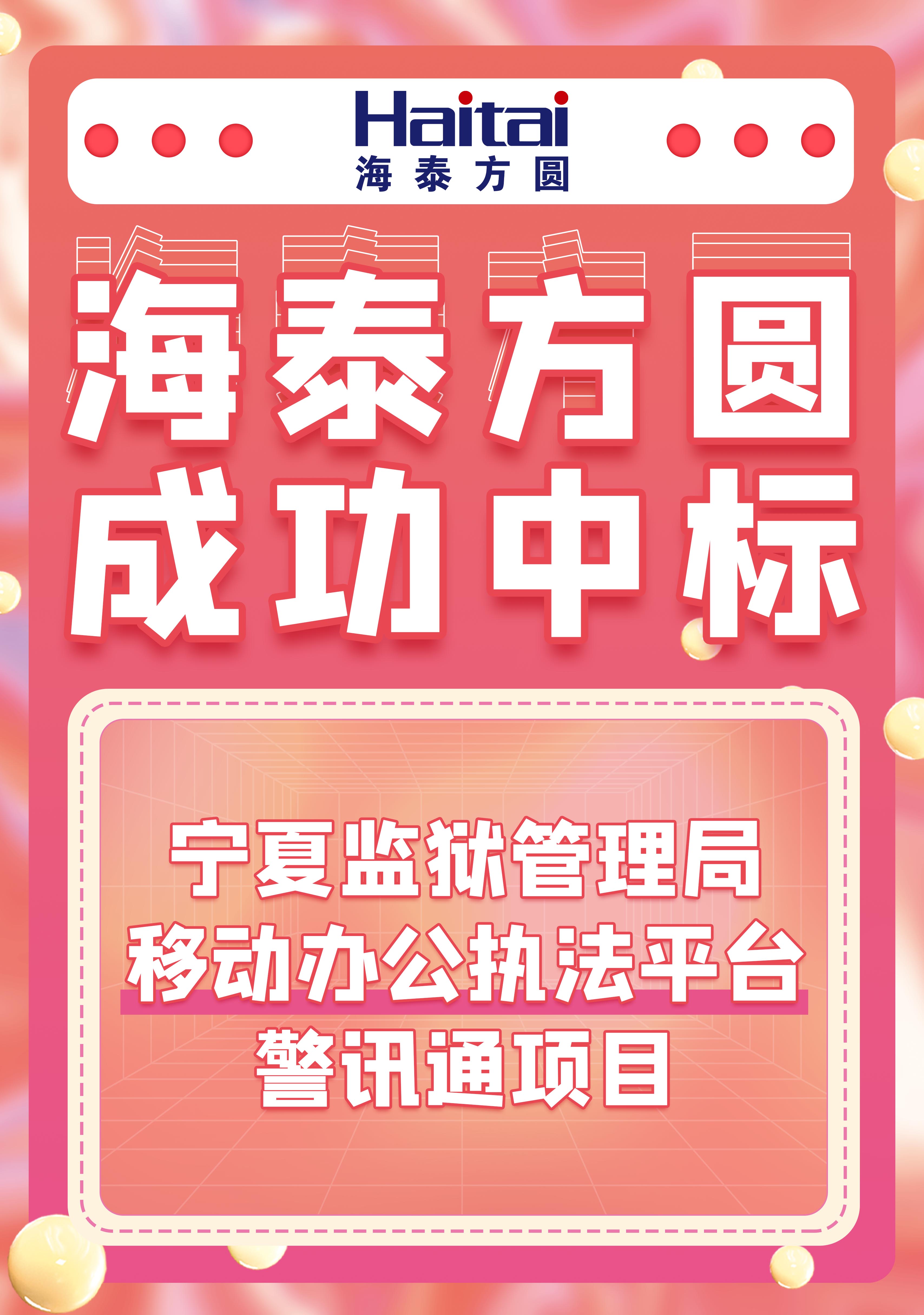 发布时间: 2022-09-06 16:37近日,海泰方圆联合宁夏电信成功中标“宁夏监狱管理局移动办公执法平台警讯通项目”!