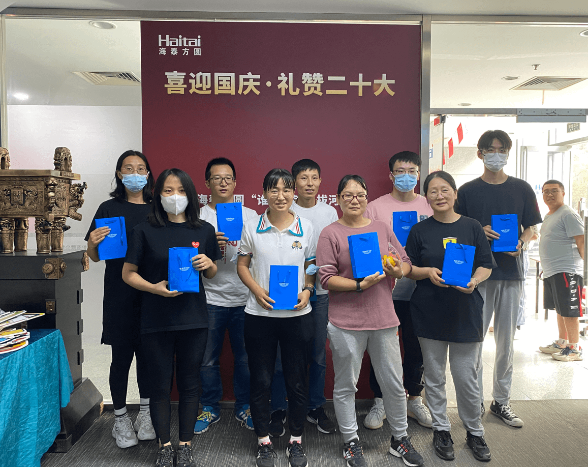 伴随着《歌唱祖国》悠扬的歌声,海泰方圆公司热闹非凡,大家沉浸在一片欢乐的红色海洋,庆祝祖国母亲73岁生日,献礼二十大。