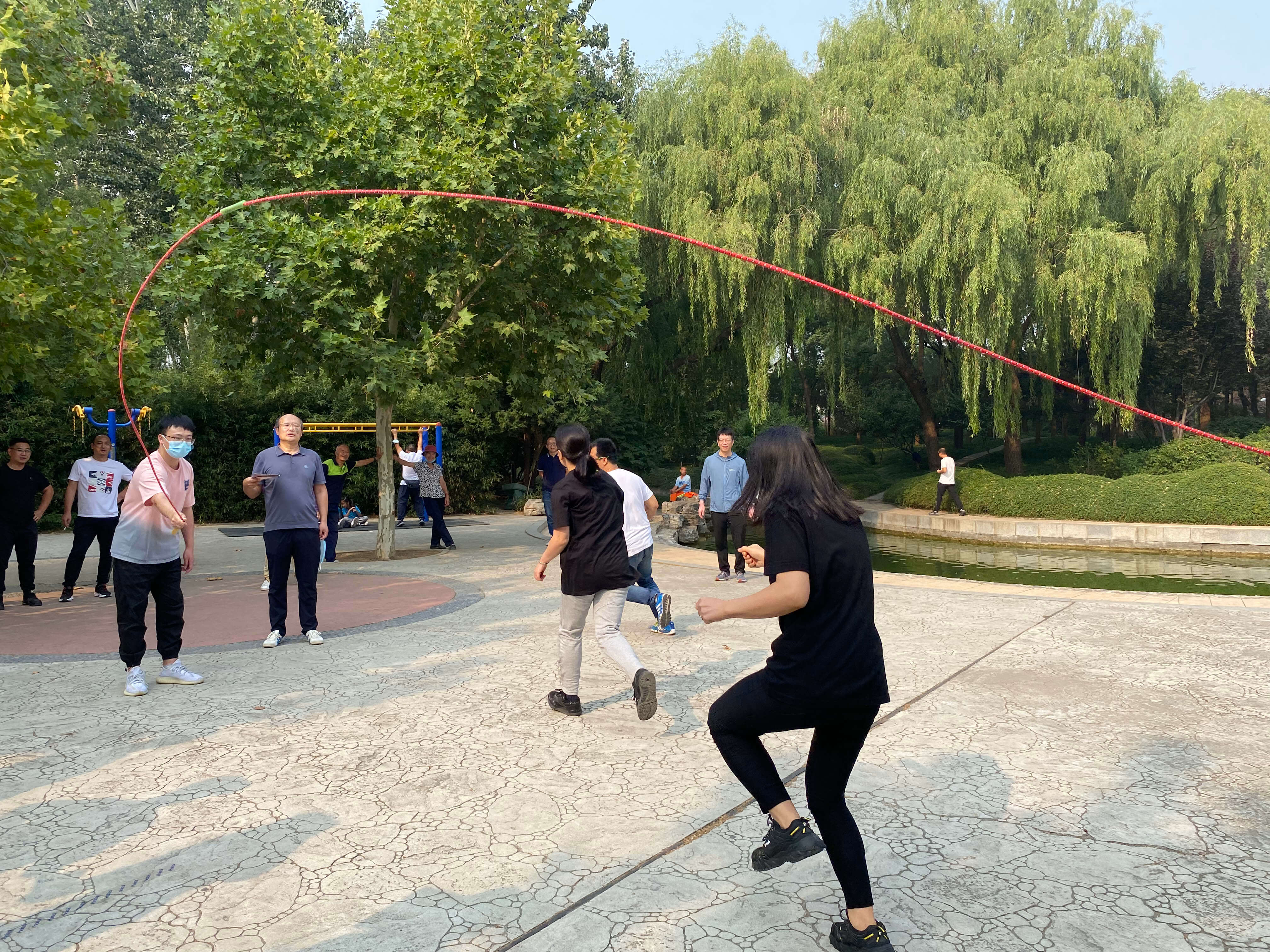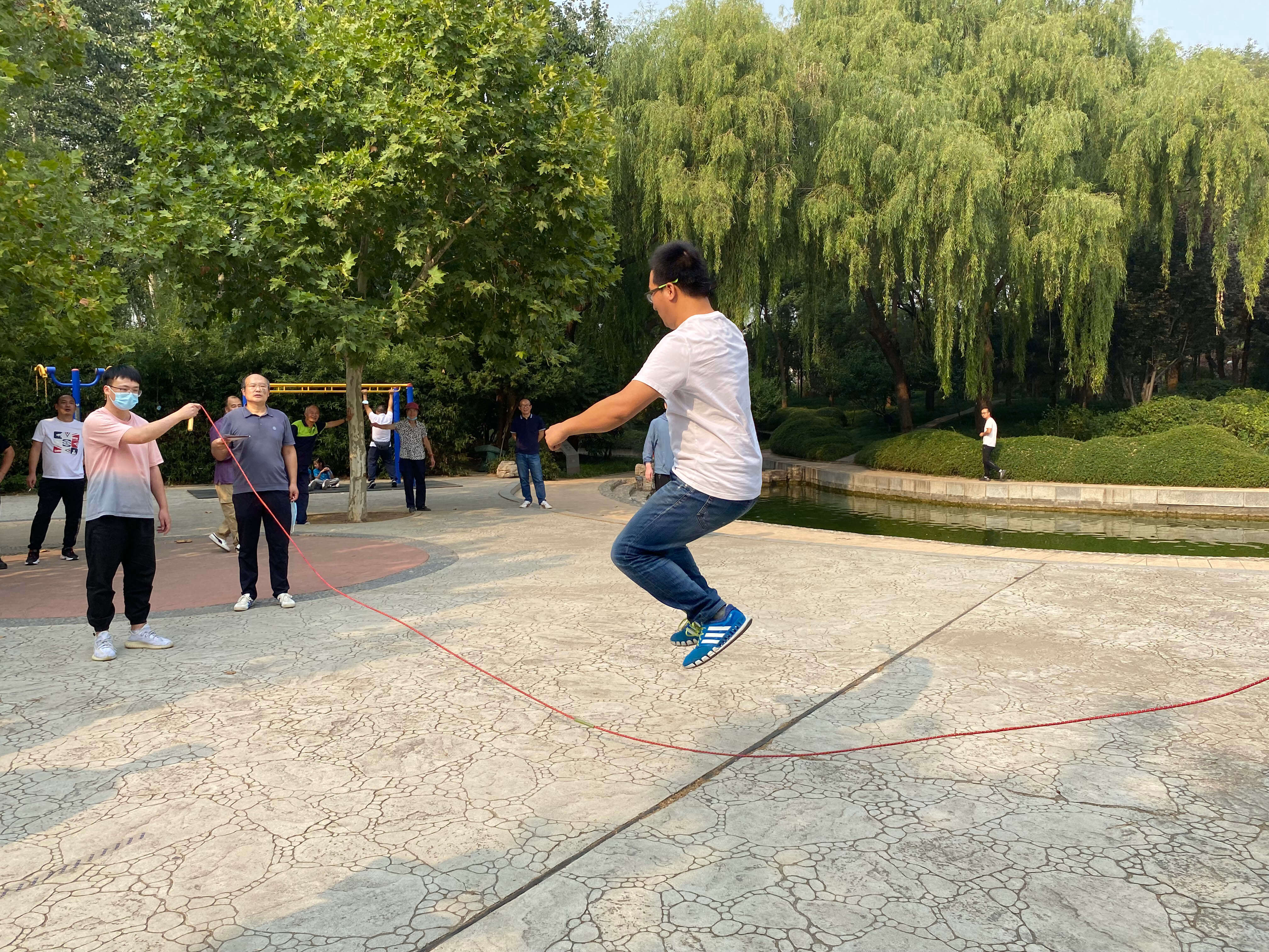 紧接着,跳绳比赛也开始啦!快来看看队员们的默契表现吧!大家在一跳一落间释放着无限的青春活力,演绎着协同作战的海泰人精神。