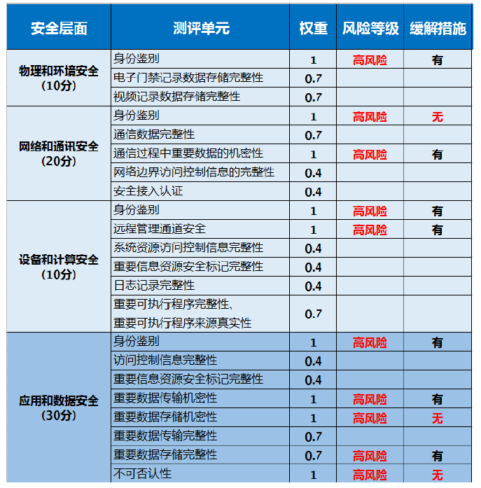 在技术要求中,涉及具体测评单元共22项,高风险项共11项,合计总分70分,其中应用和数据安全为30分,具体测评单元10项,高风险项5项,并且应用和数据安全要求是和信息系统紧密直接相关的要求,其他层面的安全要求也主要针对增强应用和数据层面的安全,所以对于信息系统来说,应用和数据安全是密改中的重中之重。