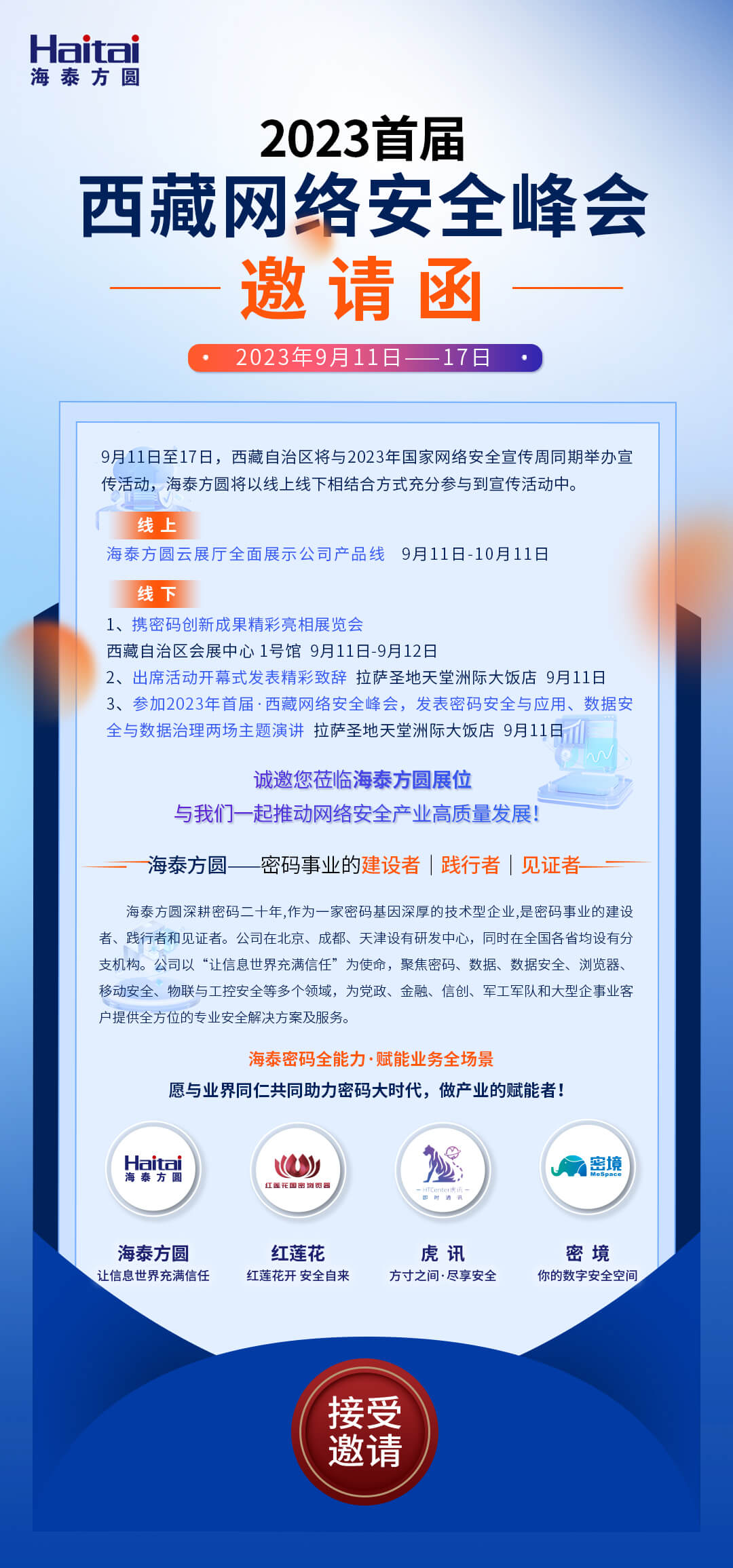 邀请函|海泰方圆邀请您参加2023年首届 · 西藏网络安全峰会