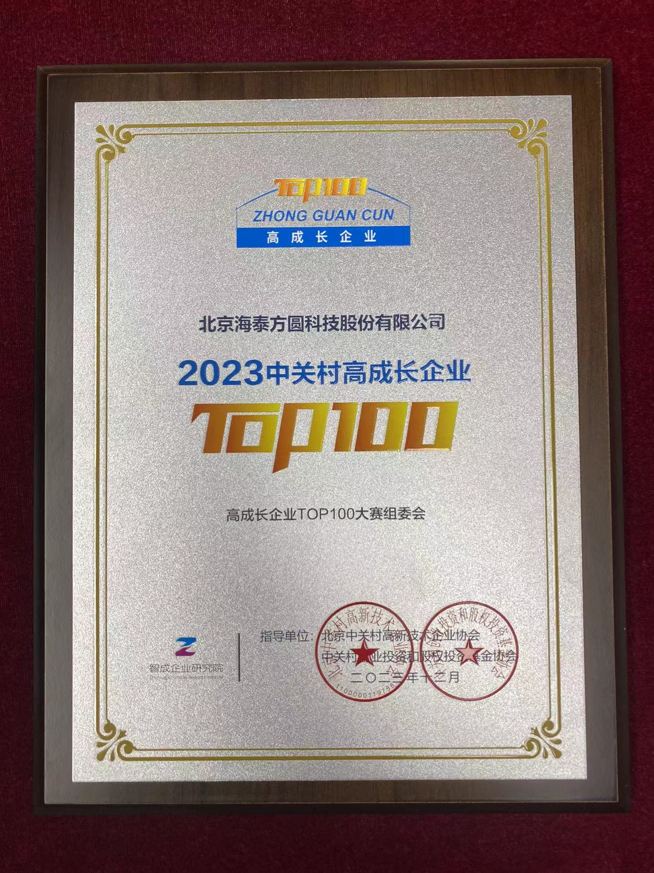 发布时间: 2023-12-19 18:5012月8日,由中关村高新技术企业协会、中关村创业投资和股权投资基金协会共同指导,智成企业研究院主办,杭州银行、中信建投证券协办的“2023高成长企业TOP100年度盛典”颁奖典礼暨创新生态发展论坛在京成功举办。海泰方圆作为“2023高成长企业TOP100”入选企业出席颁奖典礼并在圆桌论坛环节发表重要讲话。