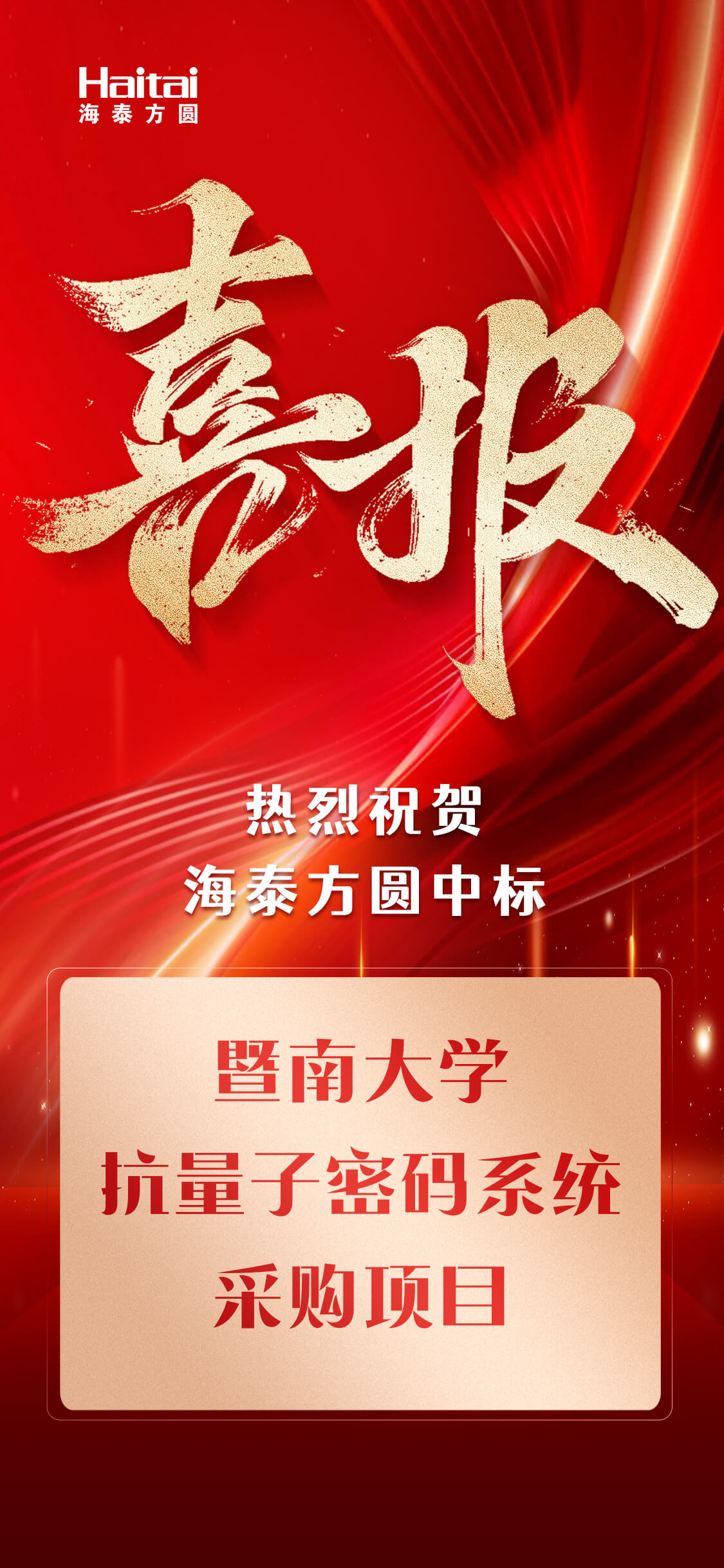 近日,海泰方圆凭借在抗量子密码领域的前瞻性布局与深厚的技术积累,成功中标“暨南大学抗量子密码系统采购项目”。此次中标,不仅体现了暨南大学对海泰方圆技术实力与产品可靠性的高度认可,也标志着公司在抗量子密码领域的领先实践正式获得高水平学术机构的背书。