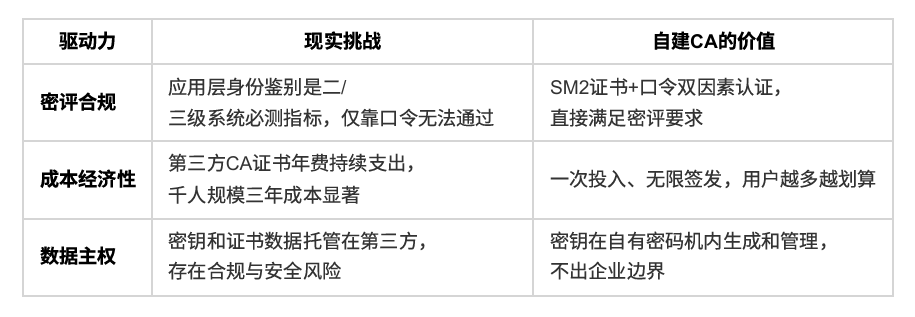 行政许可障碍正式消除。但合规底线同样清晰:自建CA所用密码产品必须持有商用密码产品认证证书,并覆盖证书申请、签发、更新、撤销等全生命周期管理。