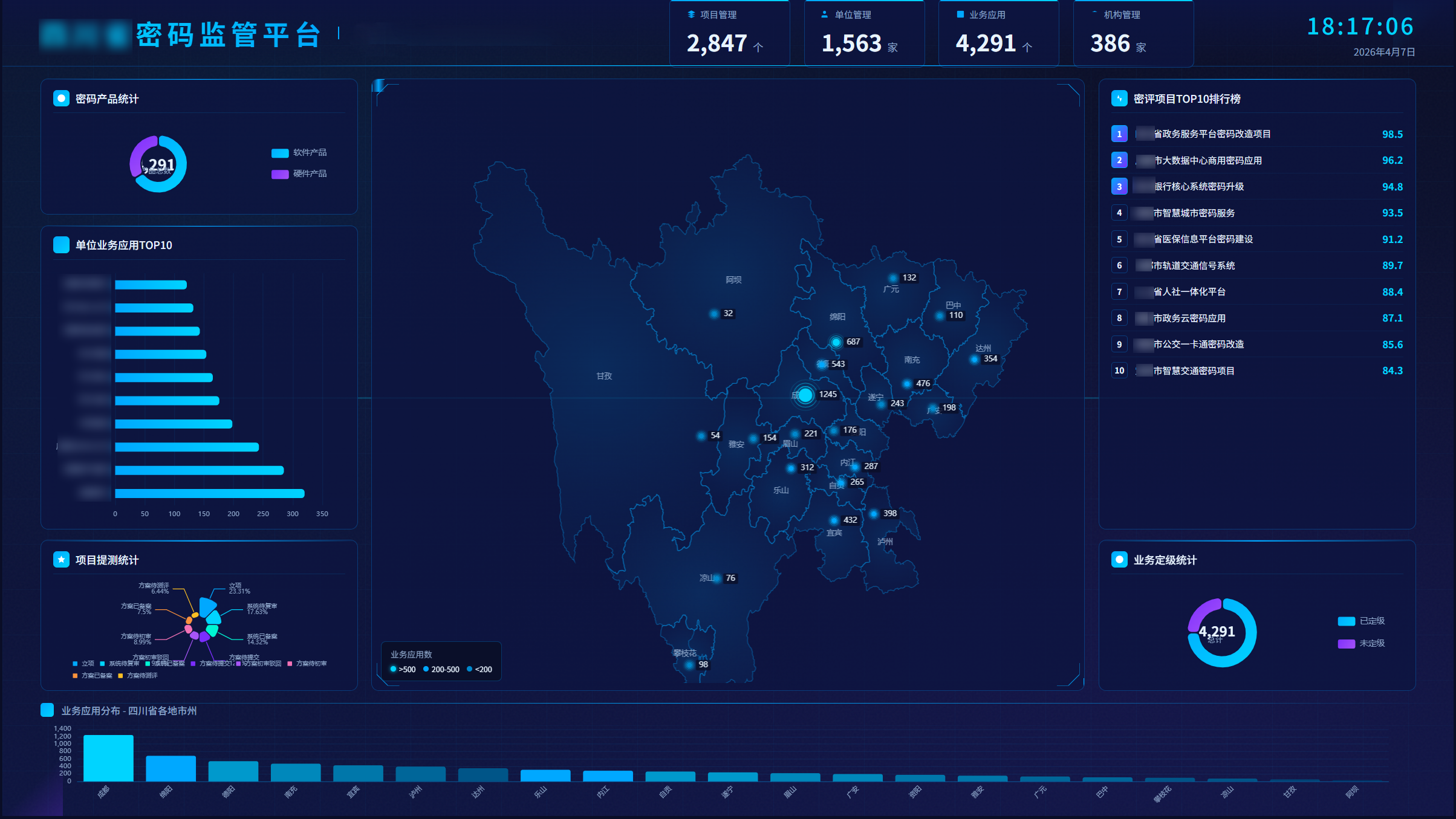 · 态势感知: 通过可视化大屏,监管部门可实时掌握区域内密码应用的整体态势,从“底数不清”转变为“心中有数”。